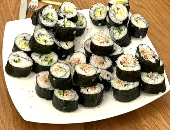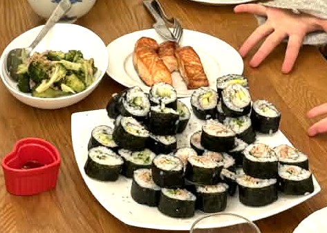 Everyone did brilliantly, and we ended up with a whole tray of perfectly rolled sushi!