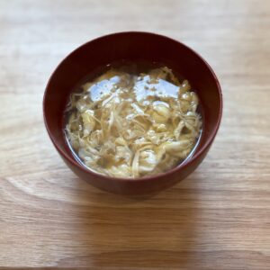 A comforting clear soup with fluffy beaten egg ribbons, seasoned with dashi and soy sauce.