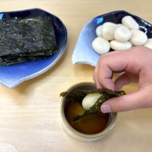 My favourite way to enjoy it is isobe-mochi — toasted mochi wrapped in nori (seaweed) and dipped in dashi soy sauce. This time, I’m sharing a healthier version of isobe-mochi made with tofu and dashi soy sauce — perfect for this season. Give it a try and enjoy a taste of Japanese New Year at home!