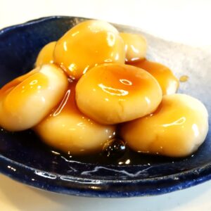 Mitarashi Dango is a traditional Japanese sweet - healthy rice dumplings made with tofu coated in a sweet soy sauce glaze.
